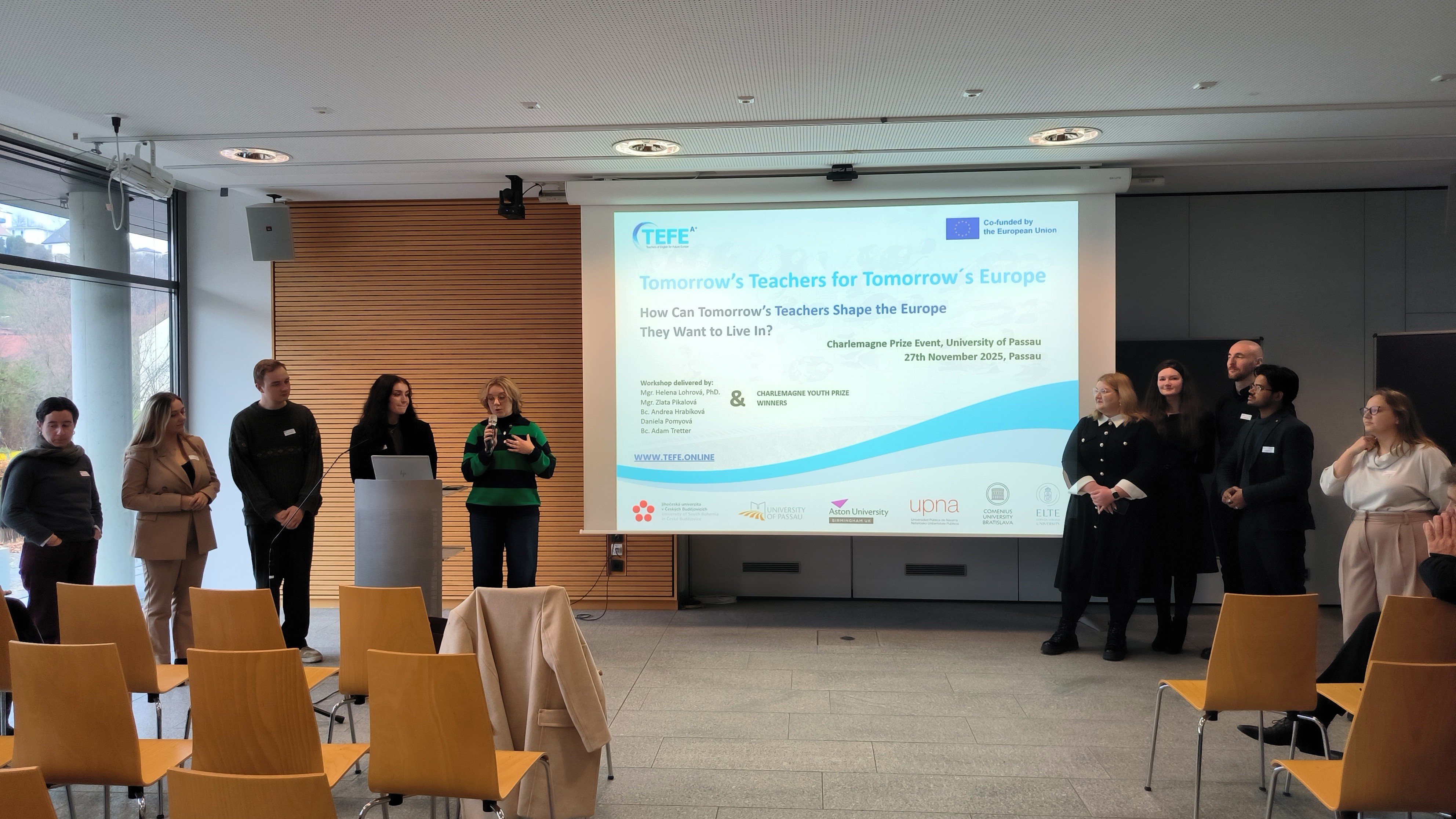 Ve dnech 26.–28. listopadu 2025 jsme měli příležitost zúčastnit se mezinárodní akce Shaping Europe’s Future, kterou Univerzita v Pasově uspořádala pro vítěze The European Charlemagne Youth Prize – jednoho z nejvýznamnějších evropských ocenění podporujících mladé lidi aktivně přispívající k demokracii a evropské spolupráci. Během tří dnů jsme se ocitli mezi studenty, akademiky a odborníky z celé Evropy. Všechny nás spojovala společná otázka, jak by mohla vypadat odolná a na demokratických hodnotách založená budoucnost Evropy – a jakou roli v jejím utváření můžeme sehrát právě my.