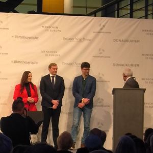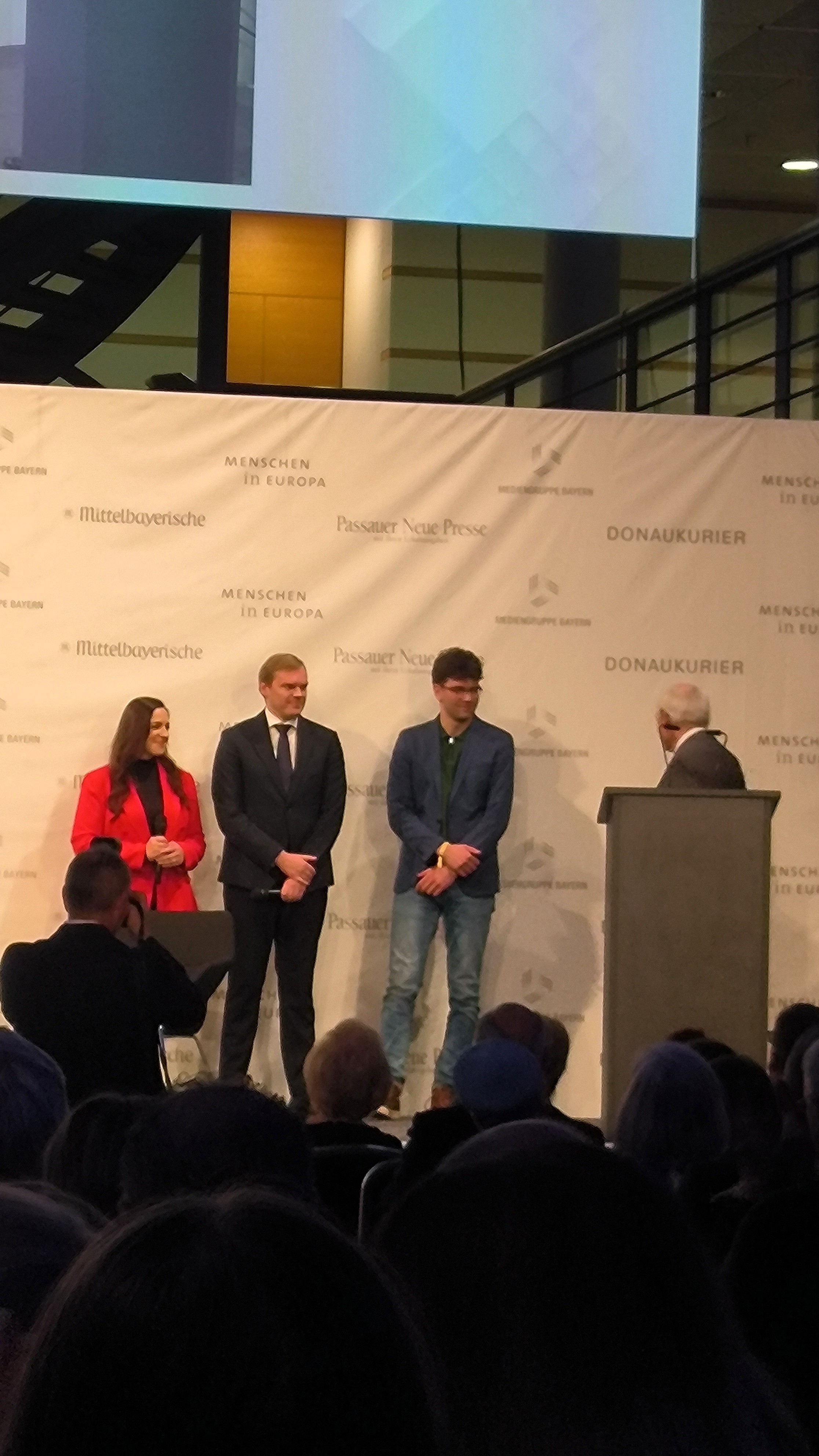 Následně byli na pódium pozváni tři zástupci Charlemagne Youth Prize Network – studenti, kteří s námi během dne spolupracovali na Univerzitě v Pasově. V krátkém interview s Dr. Lindenem představili výsledky našeho denního programu a témata, jimiž jsme se společně zabývali. Vidět část naší práce prezentovanou před tak širokým publikem bylo velmi povzbudivé.