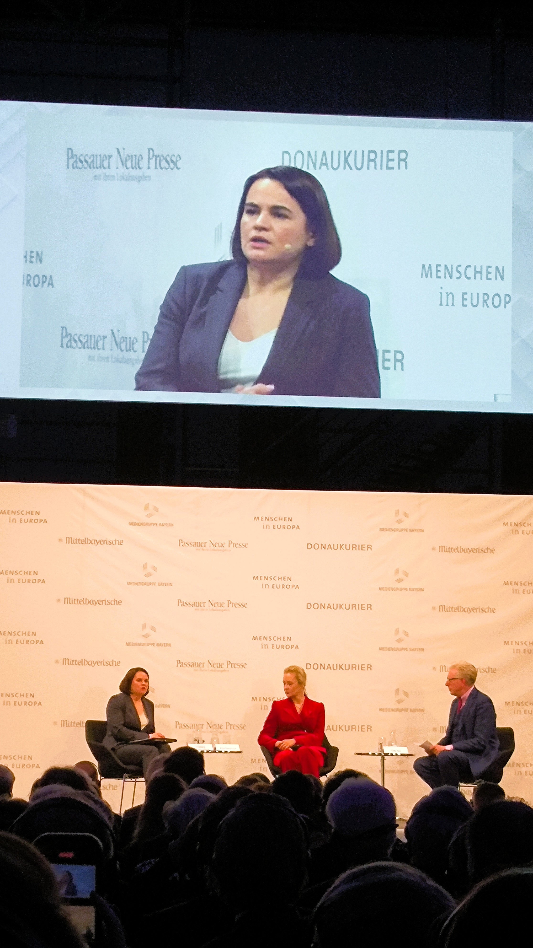 V rámci mezinárodní akce Shaping Europe’s Future jsme měli 27. listopadu 2025 výjimečnou příležitost zúčastnit se večerní akce „Courageous Women for Freedom and Democracy“ v Mediengruppe Bayern. Díky laskavé podpoře Univerzity v Pasově a Jihočeské univerzity jsme mohli prožít událost, která v nás zanechala hluboký dojem. Po příchodu do prostor Mediengruppe Bayern nás přivítal moderní, profesionálně působící sál, který okamžitě navodil atmosféru významné události. Program zahájily Julie Navalná, přední představitelka ruské opozice, a Svjatlana Cichanouská, běloruská opoziční lídryně, jejichž příchod doprovázený živou hudbou vyvolal v publiku silné emoce. Následovalo uvítání od Angeliky Diekmann, vydavatelky a iniciátorky Menschen in Europa, po němž vystoupil s proslovem Dr. Jürgen Linden, předseda správní rady Ceny Karla Velikého.