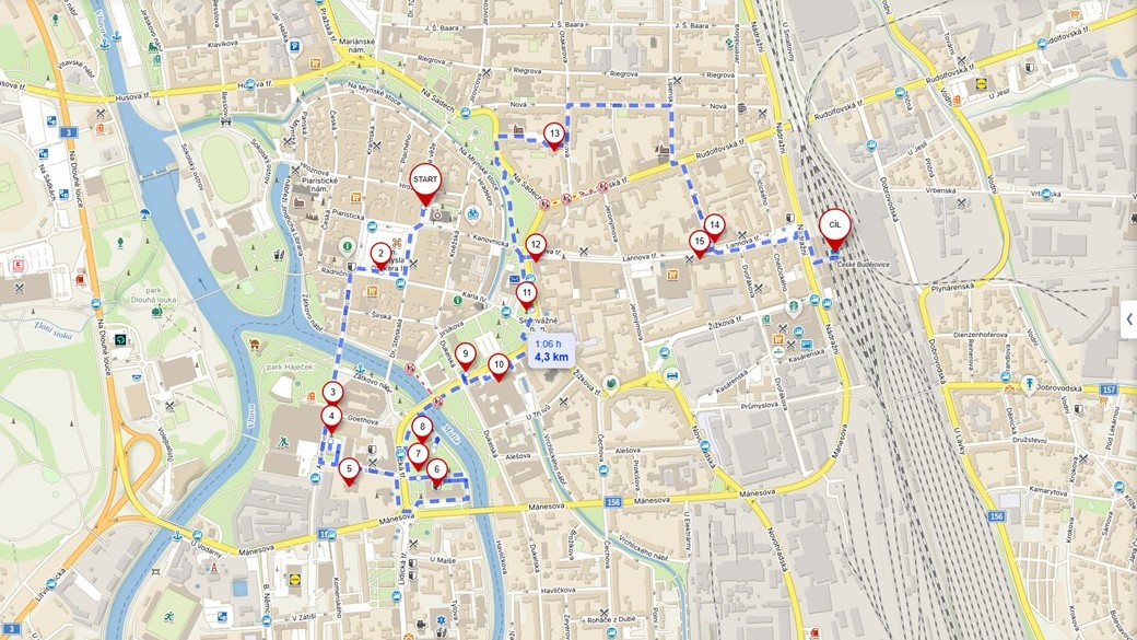 Daniel Musílek erstellte einen Stadtplan, der diese Orte in einem 2stündigen Rundgang anschaulich machte. An den diversen Halte-Punkten erklärten dann die Studentinnen Michaela Grubnerová, Larissa Kozlovský, Helena Tůmová und Šárka Vokrojová den jeweiligen Kontext. So wurde diese Exkursion zu einem traurigen und dennoch eindrucksvollen Kapitel Geschichtsunterricht in der Stadtgeschichte von Budweis/České Budějovice.