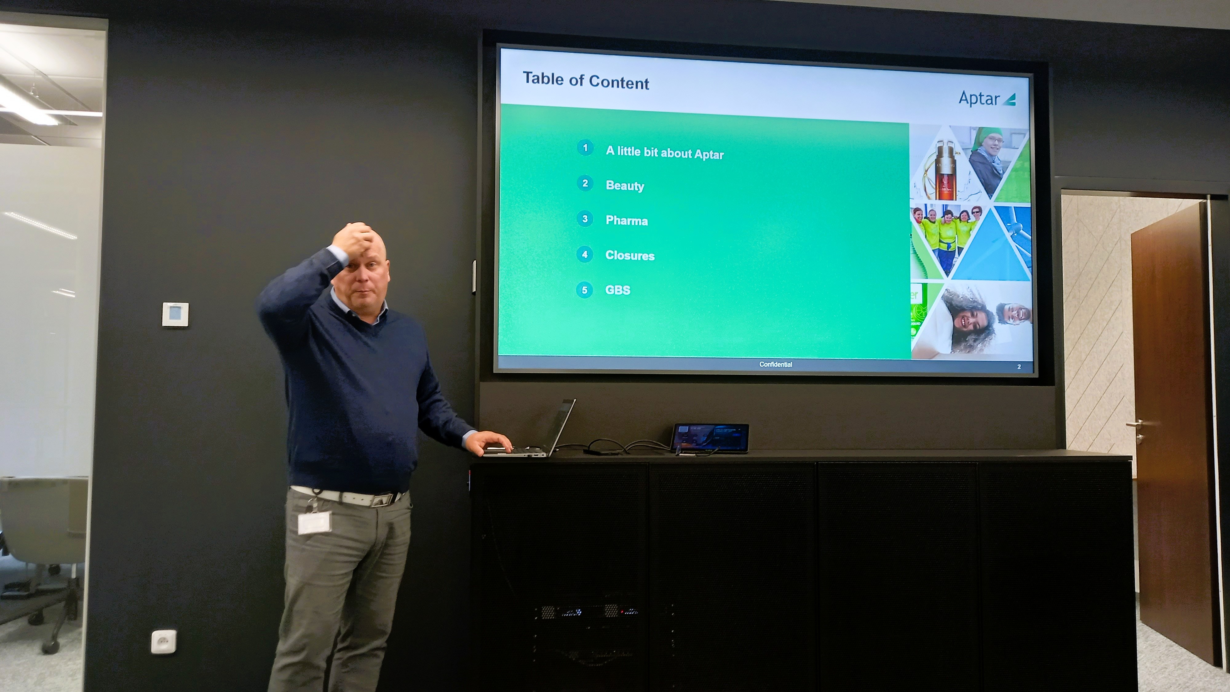 Dne 26. 11. absolvovali studenti posledních ročníků oborů Francouzský / Španělský jazyk pro evropský a mezinárodní obchod exkurzi v Globálním centru podnikových služeb (GBS) společnosti APTAR. Exkurze zorganizována v rámci předmětu Přednášky externích odborníků byla velmi přínosná. Společnost nejprve představil ředitel Timo Allinen a dále studenti dostali možnost seznámit se s fungováním všech deseti oddělení centra podnikových služeb společnosti, která je světovým leadrem na trhu plastových víček v oborech kosmetiky, léčiv a potravin. Jejich produkty používáme na denní bázi, neboť jsou součástí výrobků nejznámějších značek parfémů, nosních kapek nebo kečupů. A svoje globální centrum podnikových služeb zřídila firma v Českých Budějovicích. Odsud obsluhuje více než 13 000 zaměstnanců v pobočkách ve více než 20 zemích, když jim zajišťuje nejrůznější služby od nákupu materiálu, přes HR služby, po účetnictví a fakturaci. Zde v Českých Budějovicích se stala největším zaměstnavatelem našich absolventů s cizími jazyky. Pracovním jazykem společnosti je sice angličtina, ale znalost každého dalšího cizího jazyka na čele s francouzštinou (ve Francii se nachází nejvíce výrobních závodů společnosti) otevírá brány ke kariéře v této společnosti. Za možnost exkurze děkujeme!