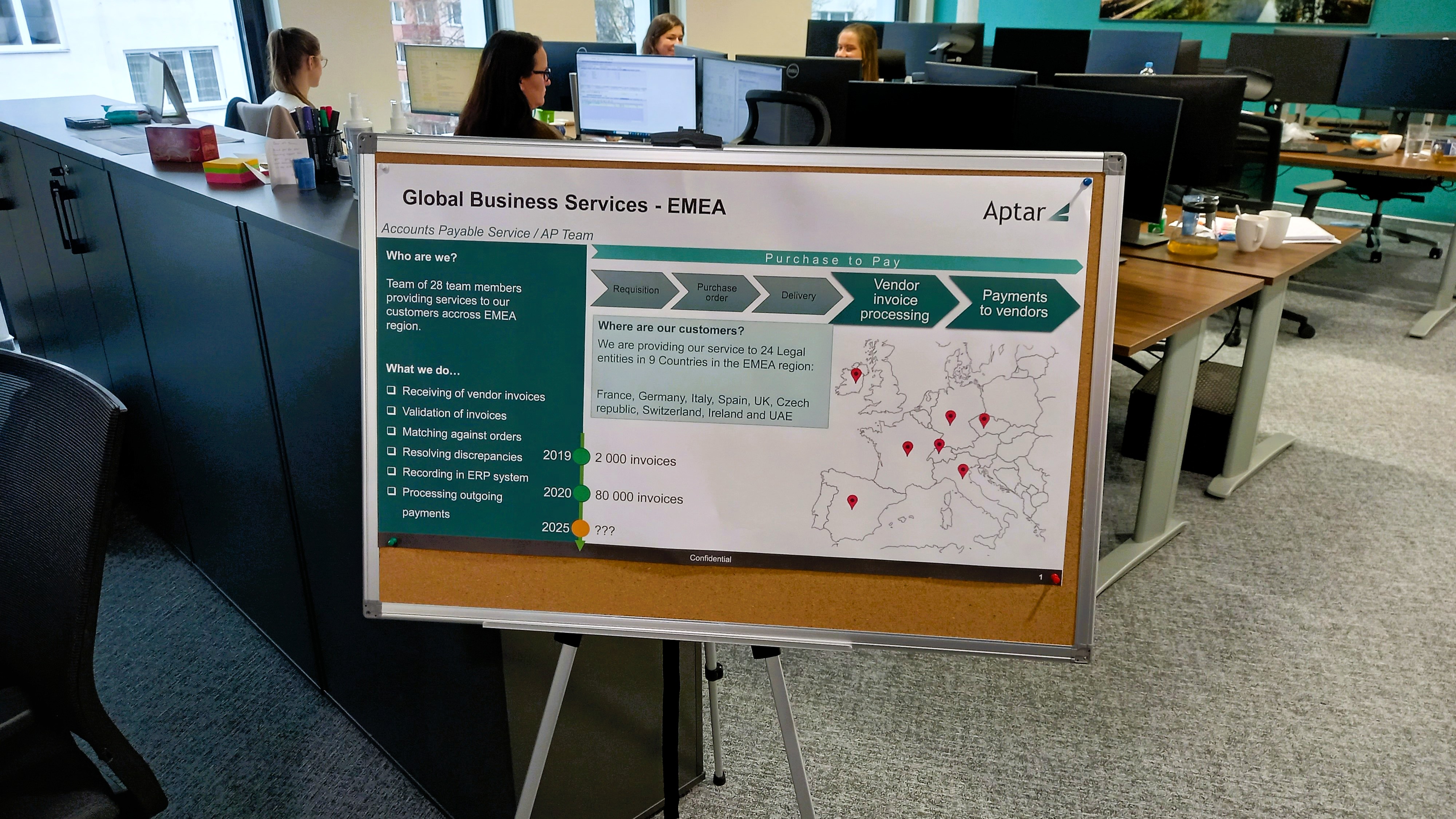 Děkujeme společnosti APTAR za možnost seznámení se s fungováním globálního centra podnikových služeb, které je v Českých Budějovicích největším zaměstnavatelem našich absolventů s cizími jazyky.