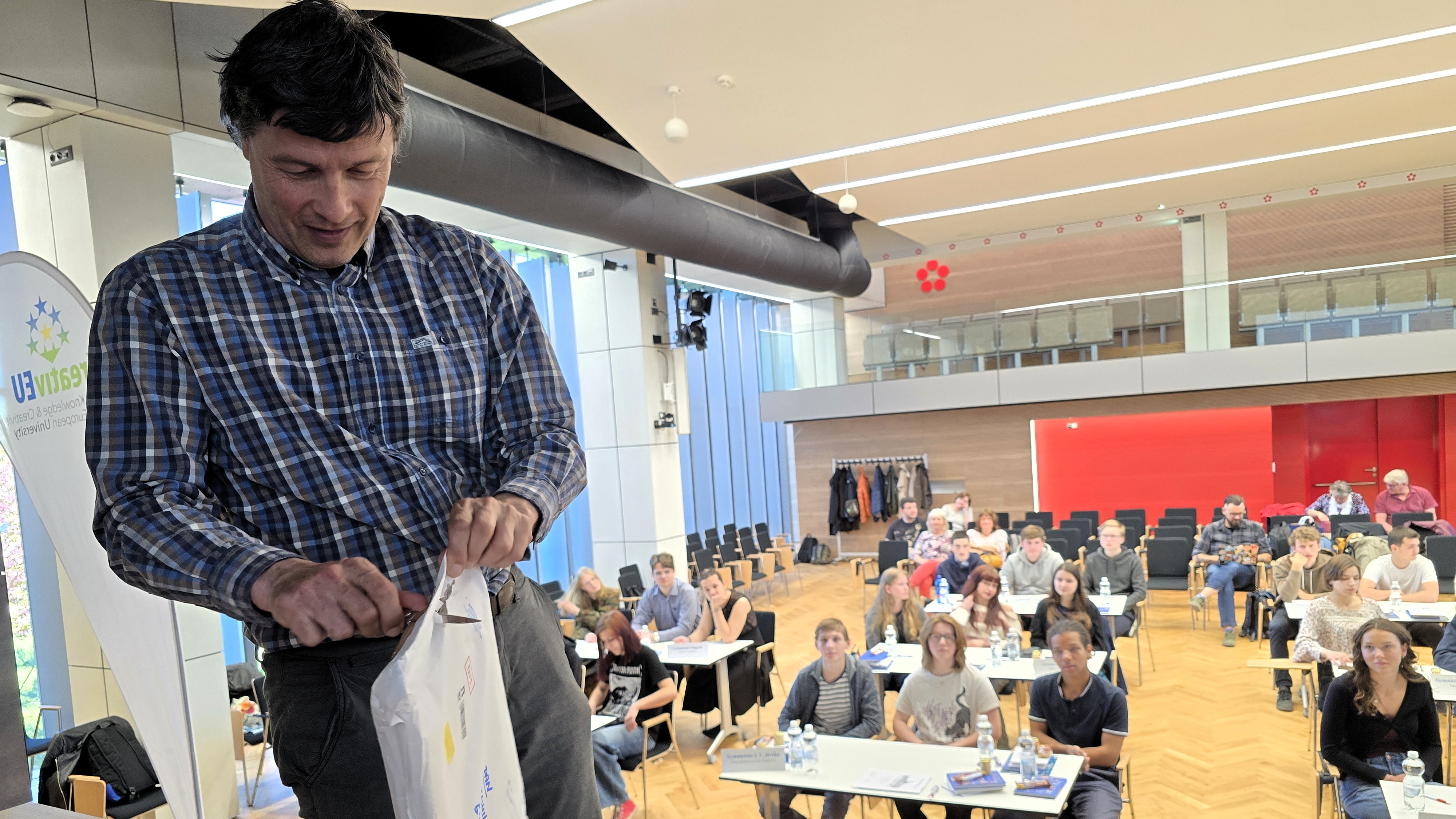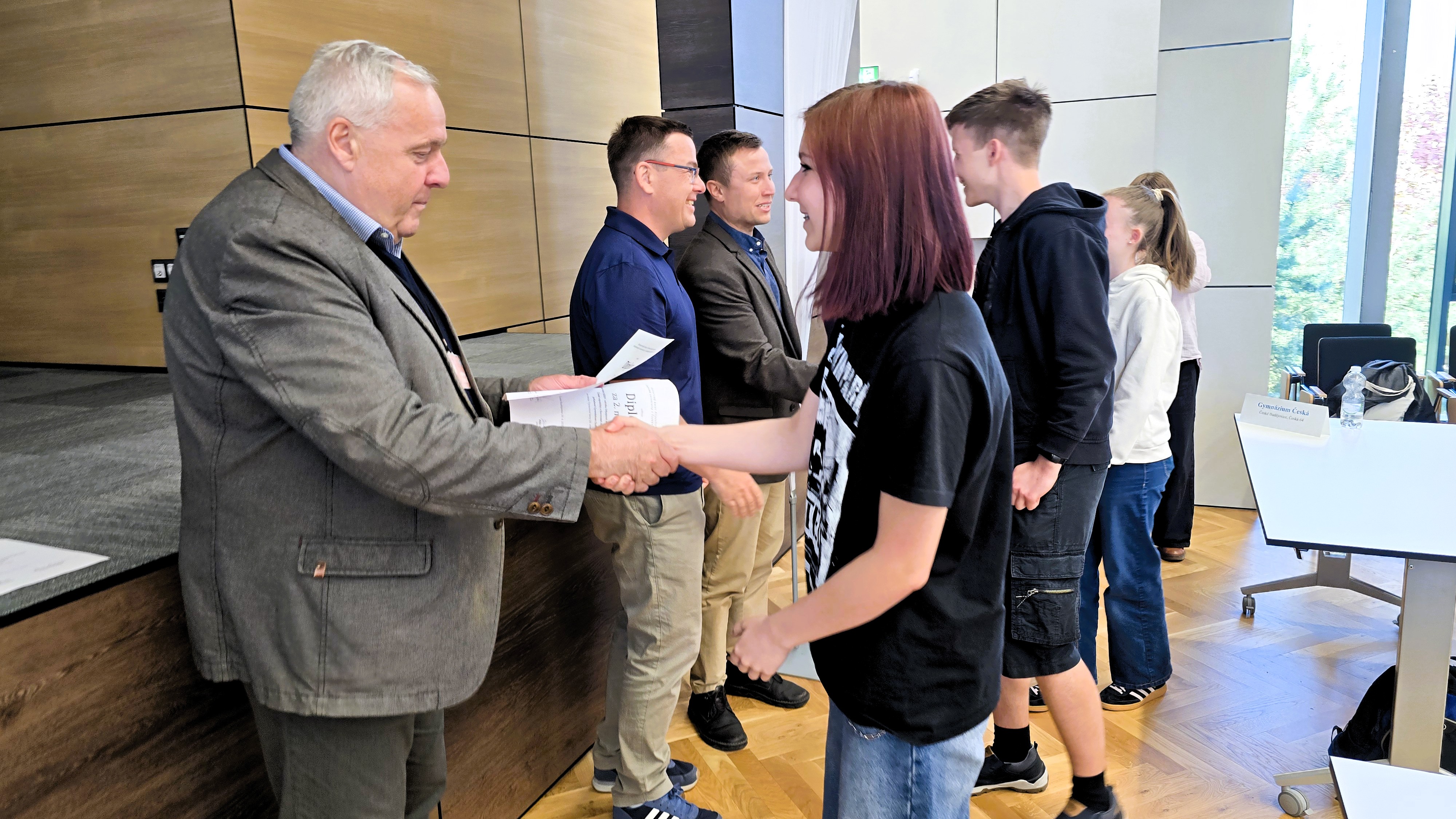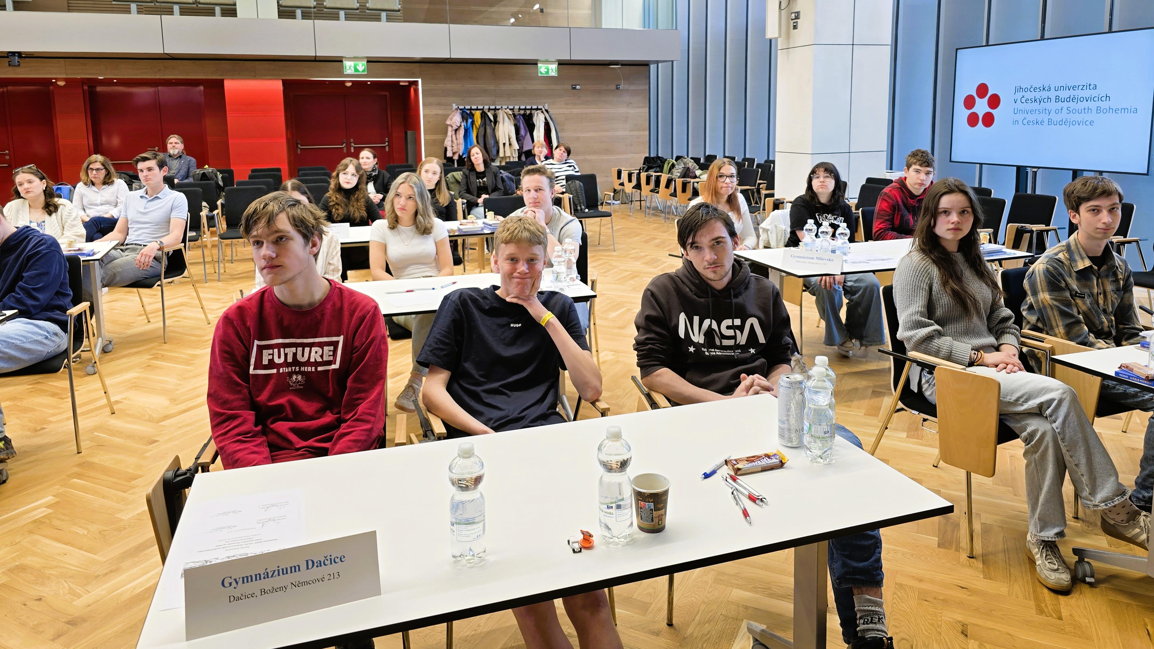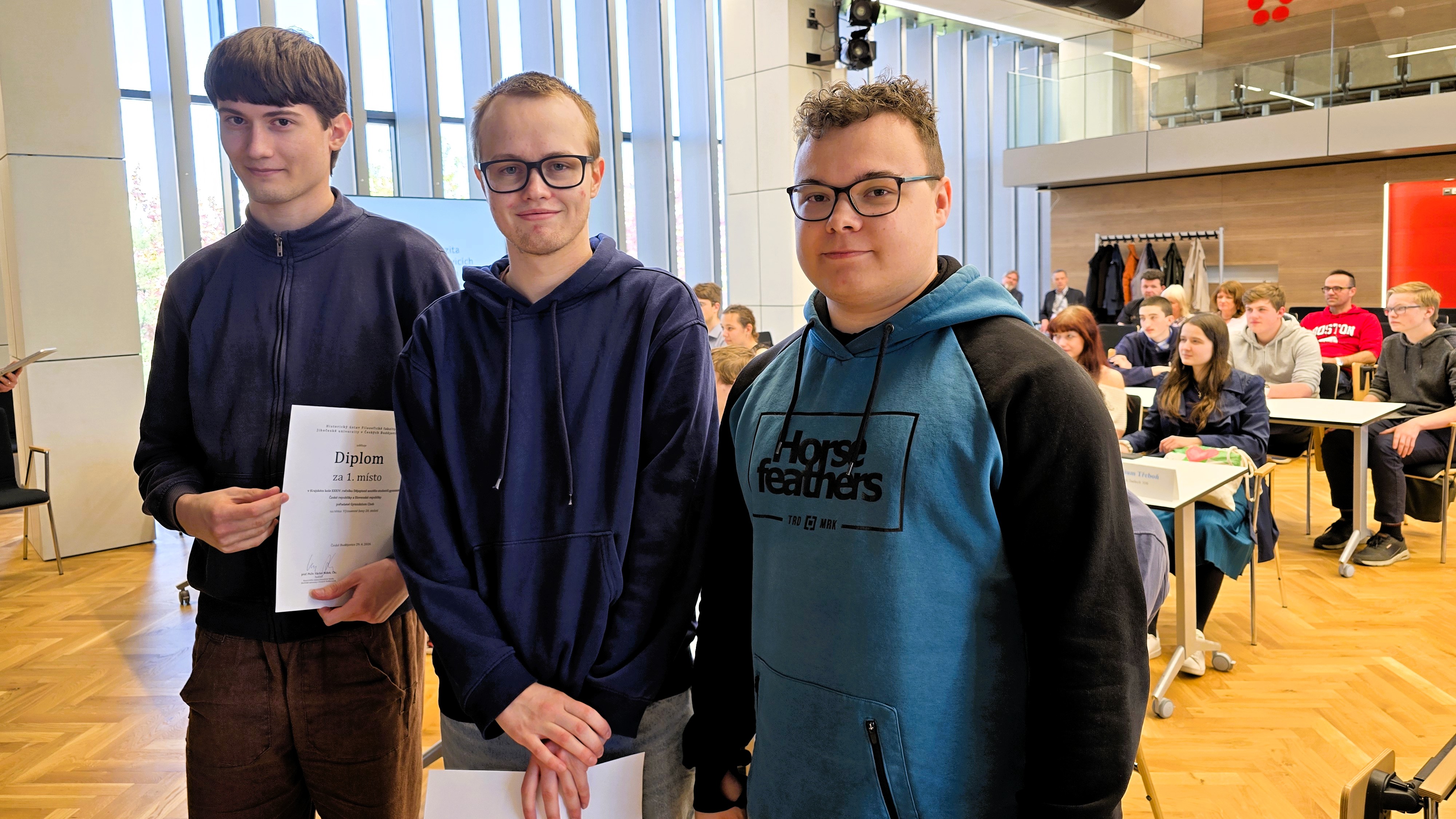 V Aule Jihočeské univerzity v Českých Budějovicích se konalo ve středu 29. dubna 2026 krajské kolo již XXXIV. ročníku Dějepisné soutěže studentů gymnázií České republiky a Slovenské republiky. Organizace této významné události se tradičně ujaly Gymnázium Jírovcova spolu s Historickým ústavem Filozofické fakulty Jihočeské univerzity. Celkem šestnáct tříčlenných družstev z jihočeských gymnázií poměřilo své vědomosti v hodinu trvajícím a vysoce náročném testu, jehož tématem se v letošním roce staly významné ženy 20. století. V silné konkurenci obsadili nejvyšší příčku studenti z Gymnázia Strakonice. Na druhém místě je následovali soutěžící z Gymnázia Česká v Českých Budějovicích. Třetí příčka patřila družstvu českobudějovického Gymnázia Jírovcova. Všechny tři nejvýše umístěné týmy si na základě vynikajícího výkonu vysloužily kvalifikaci do celostátního kola soutěže, které proběhne v Chebu.