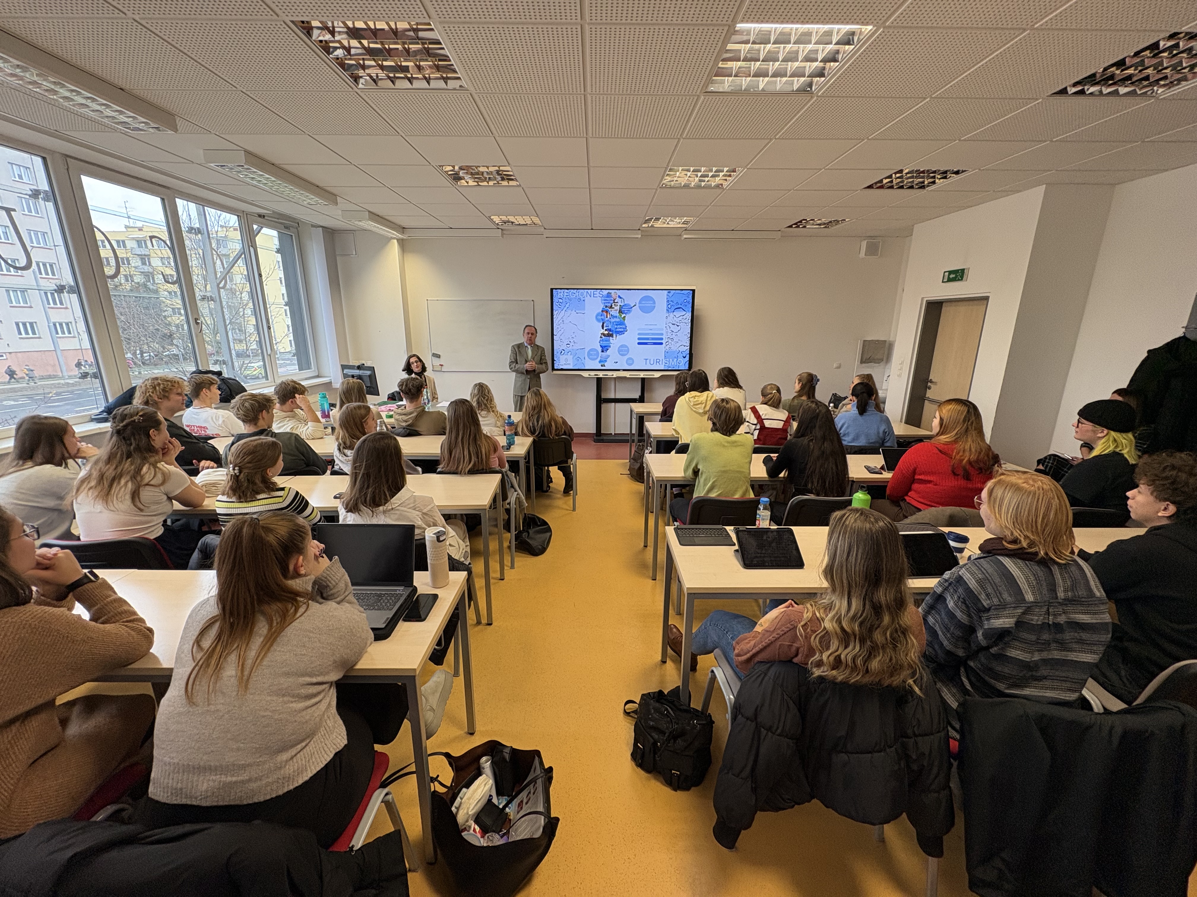 Aktivity ve spolupráci s Argentinou v projektu Erasmus+, ale i mimo něj však v letošním akademickém roce nejsou jen o těchto třech stážích. Na podzim fakultu navštívil pan velvyslanec, J. E. Claudio Rozencwaig, který v rámci cyklu Cátedra argentina tentokrát přednášel o geografické a ekonomické rozmanitosti Argentinské republiky. Zároveň jsme díky režisérovi snímku El exilio de los músicos Ivánu Cherjovskému nahlédli do života židovských hudebníků, kteří v minulosti emigrovali z Evropy do Argentiny.