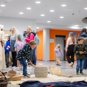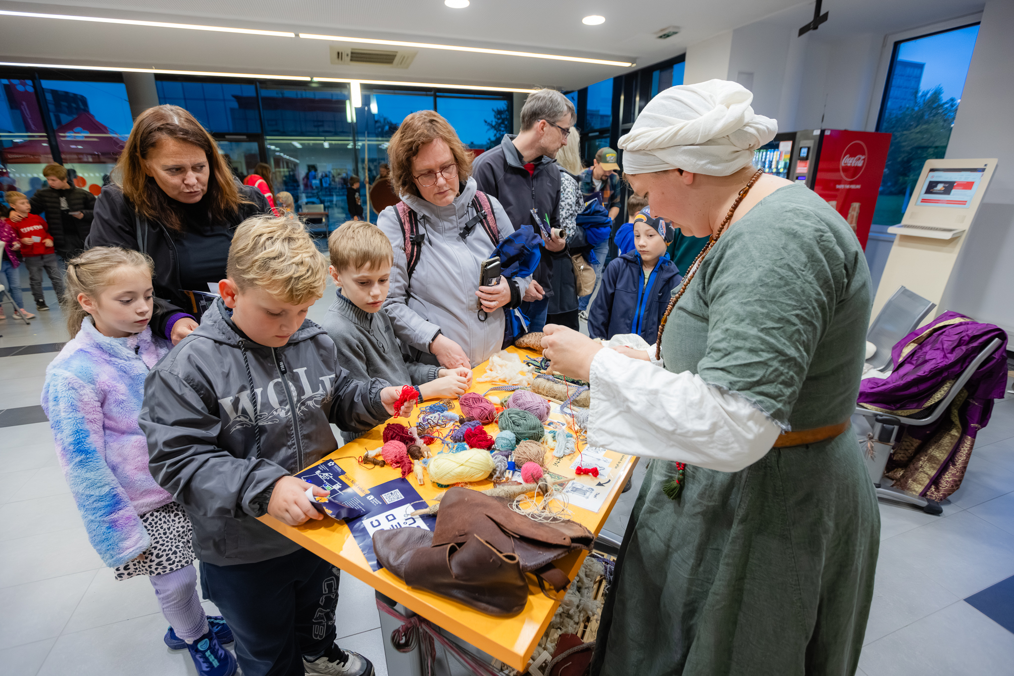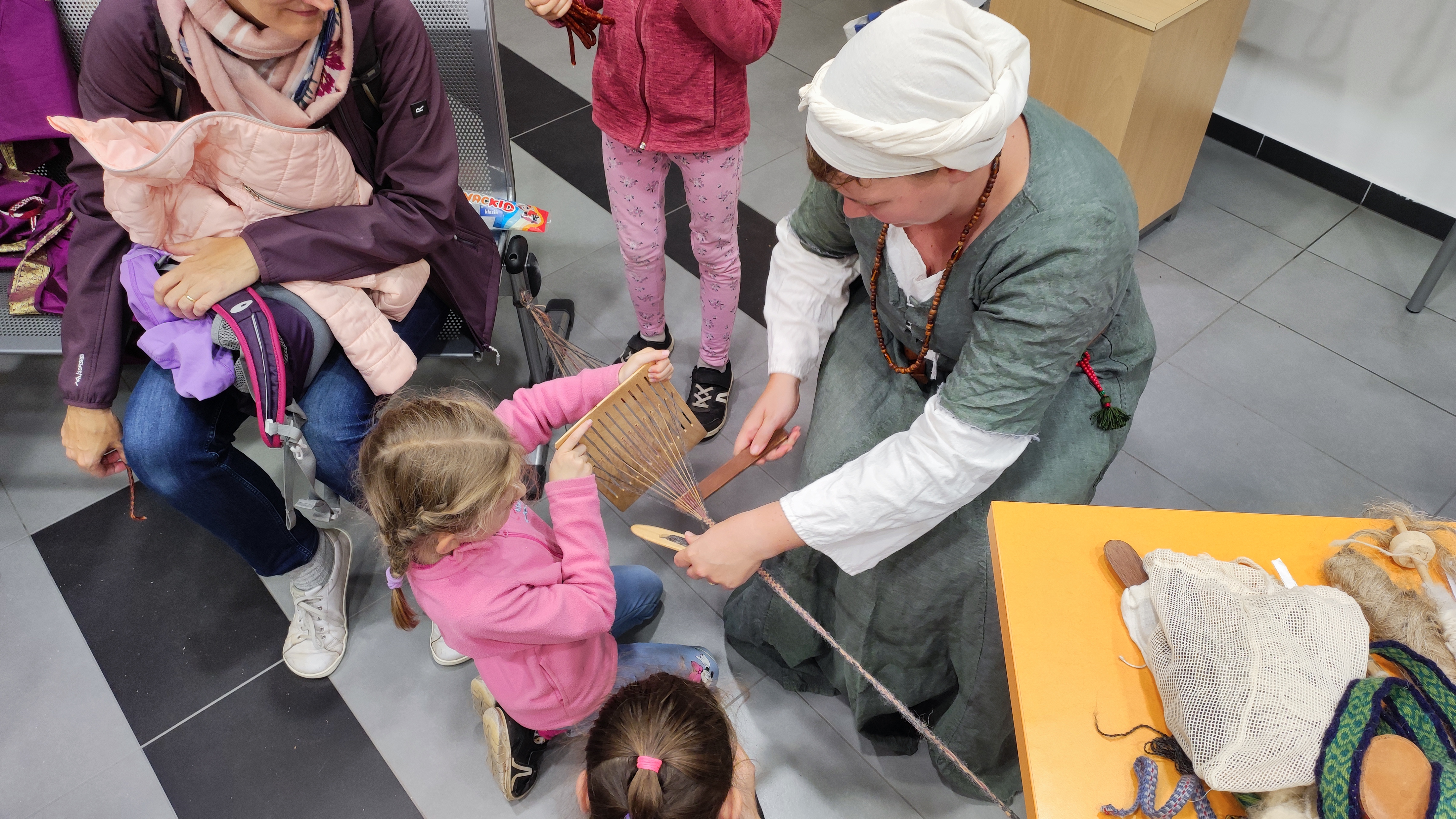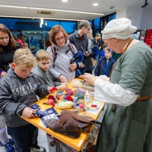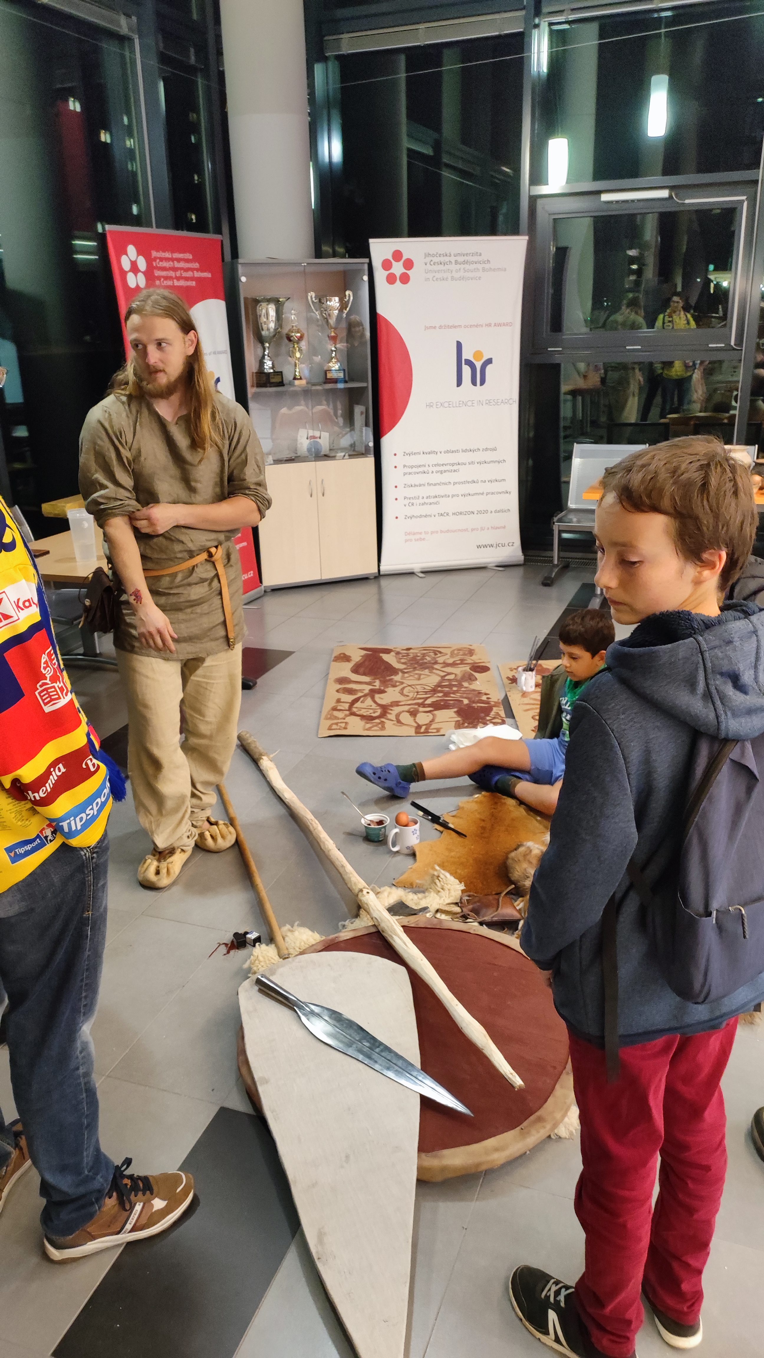 Rodiny s dětmi i jednotliví zájemci si vyzkoušeli tematická stanoviště zaměřená na práci historiků, lingvistů, uměnovědců a archeologů. Právě Archeologický ústav FF JU se postaral o podstatnou část programu prostřednictvím sedmi stanovišť představujících každodennost středověku.
