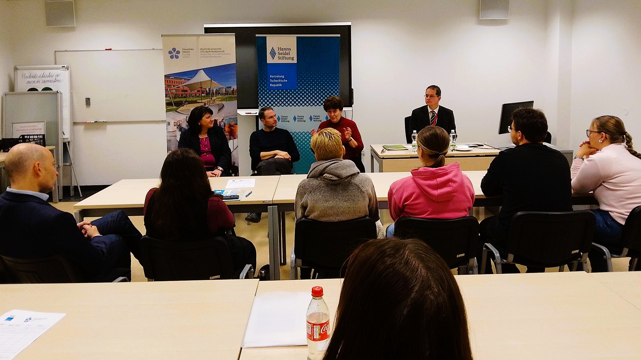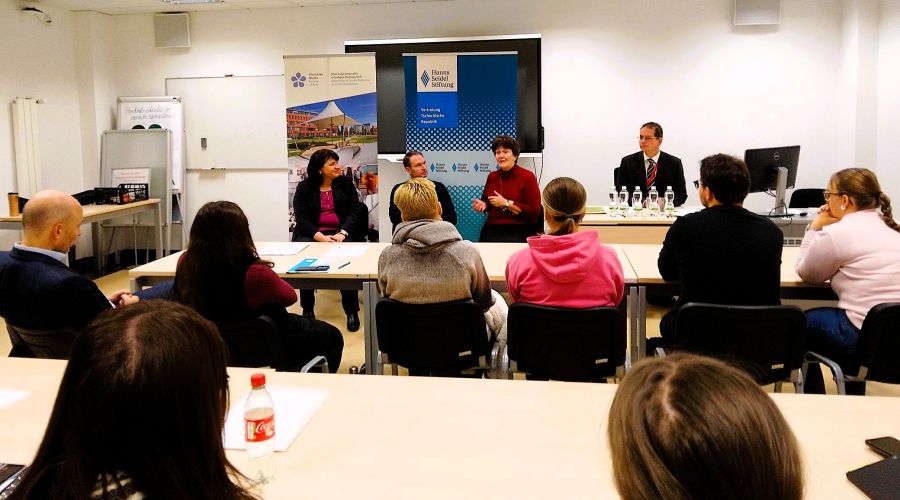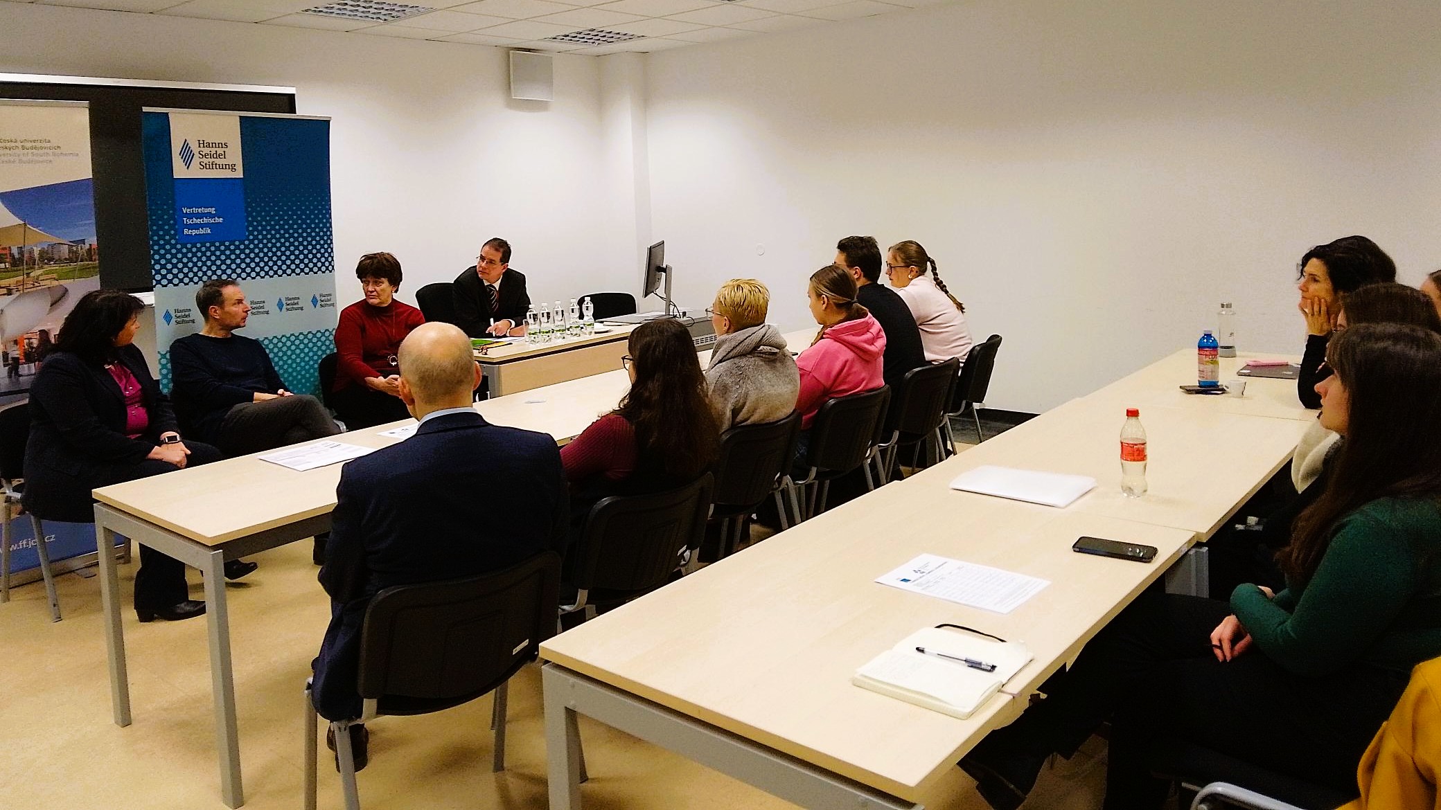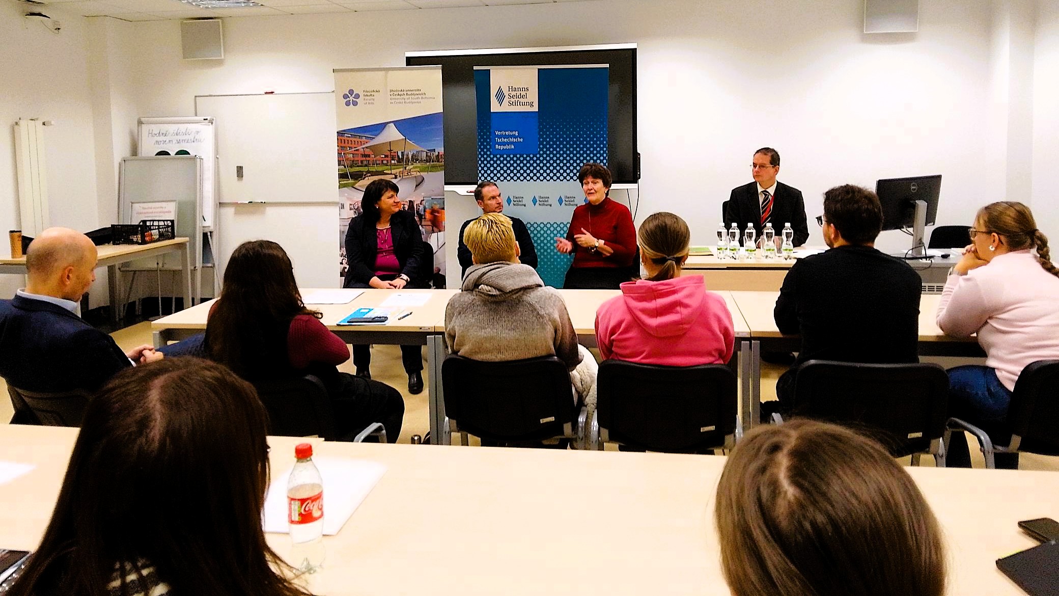 Am 2. Dezember 2025 fand im Klub der Akademischen Bibliothek der Südböhmischen Universität eine Podiumsdiskussion zum Thema „Politik im Umgang mit Hass: Resignation oder Widerstand“ statt? Zu den Diskussionsteilnehmern gehörten die beiden erfahrenen Kommunalpolitikerinnen aus Bayern, Bernadette Dechant (Berzirksrätin in der Oberpfalz und Stadträtin der Stadt Regensburg), Barbara Gerl (Gemeinderätin in Freudenberg und Kreisrätin im Landkreis Amberg-Sulzbach) sowie Hynek Látal Stadtrat in České Budějovice und gleichzeitig Lehrer an der Philosophischen Fakultät der Südböhmischen Universität. Die Veranstaltung wurde durch die Unterstützung der Hanns-Seidel-Stiftung ermöglicht. Das Ziel der Diskussion war, Erfahrungen mit Hassreden im Kontext der Kommunalpolitik in Bayern und Südböhmen zu vermitteln.