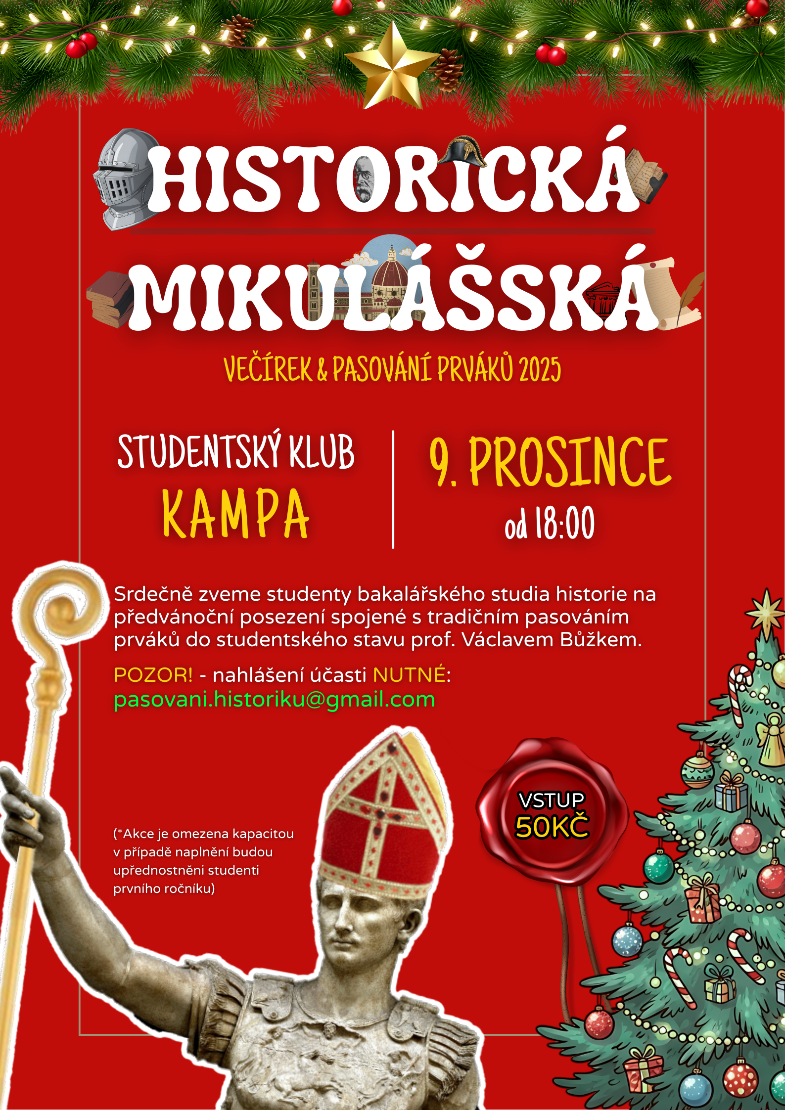 Srdečně zveme studenty bakalářského studia historie na předvánoční posezení spojené s tradičním pasováním prváků do studentského stavu prof. Václavem Bůžkem.